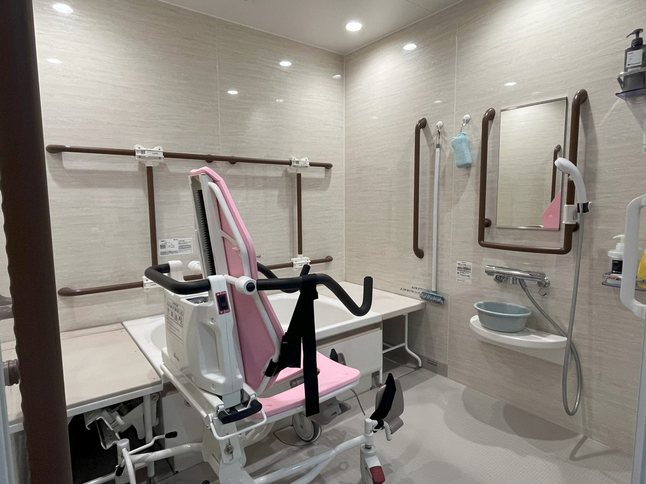 身体状況の確認後、スタッフが介助、見守りをいたしますので安全に入浴できます。